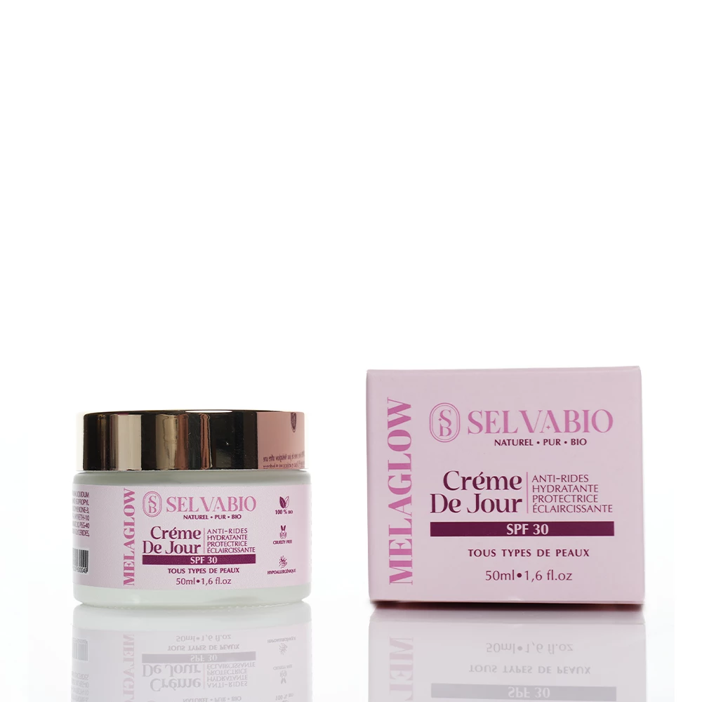 DESCRIPTION : Notre crème de jour Melaglow offre une protection solaire SPF 30 tout en éclaircissant et hydratant votre peau. Sa formule aide à réduire l'apparence des rides et à uniformiser le teint.